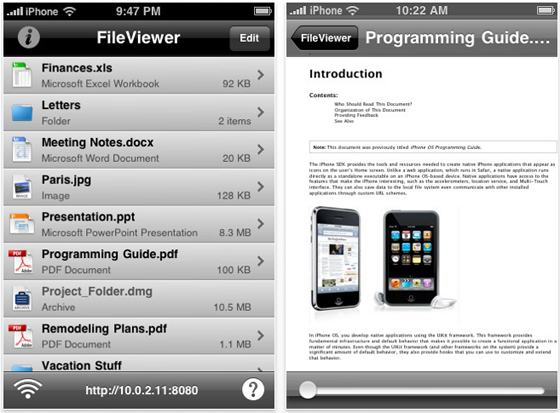Heute kann man 4,99 sparen: Die App File Viewer ist gerade kostenlos zu haben. File Viewer ist eine Applikation, die Datenspeicherung, Datentransfer, Ansicht von Dateien und eMail auf dem iPhone ermöglicht. Wenn man die App auf dem iPhone oder iPod installiert hat, kann man das Gerät per WLAN als Netzlaufwerk in Windows, Mac OS X und Linux integrieren und so Daten zwischen dem Rechner und dem Gerät hin und her schieben.