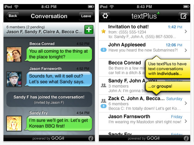 textPlus bietet kostenlose Nachrichtenübermittlung von WLAN zu WLAN und eine Art Gruppenchat per SMS