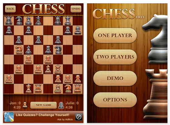 Die App für iPhone und iPod Touch bietet die Funktion eines Schachspiels für einen oder sogar zwei menschliche Spieler. Und wenn einem tatsächlich mal langweilig sein sollte, bietet die App auch einen Demo-Modus, wo die App dann allein spielt.