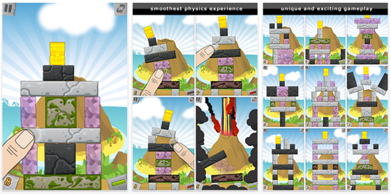 80 unterschiedliche Level stehen zur Verfügung. Es gibt unterschiedliche Blöcke, die auch unterschiedliche Eigenschaften aufweisen. Über den Touchscreen kann man die Blöcke auswählen und verschieben, aber Vorsicht: Stürzt das Konstrukt ein, so verliert man den Level und die Gunst der Götter.