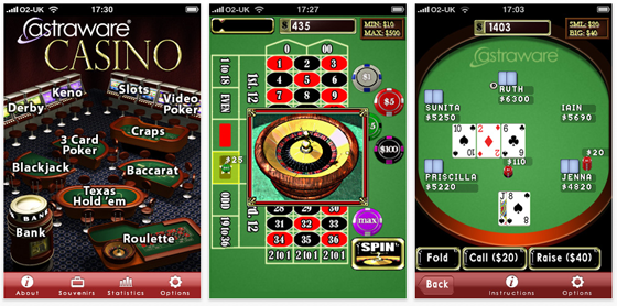 Versuchen Sie Ihr Glück mit Astraware Casino, der heute kostenlosen Vollversion für Ihr iPhone und iPod Touch. Astraware Casino ist eine Sammlung der beliebtesten Casino-Spiele in einer App. Hier kann man Casino-Spiele ausprobieren, ohne das letzte Hemd zu verlieren, denn Astraware ist heute komplett kostenlos für Sie im Download und verlangt auch keine realen Einsätze, wenn Sie spielen!