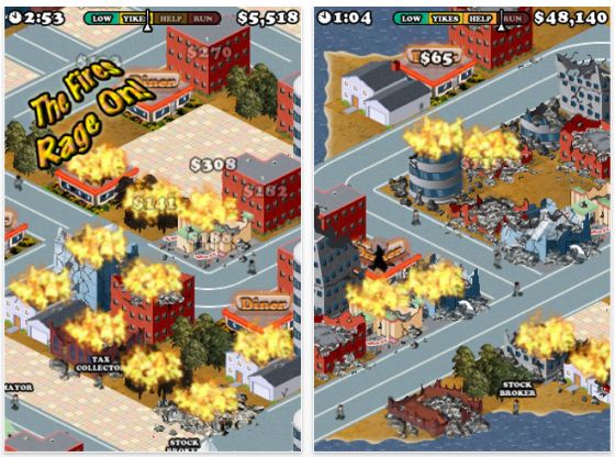 Es gibt auch Belohnungen, zum Beispiel durch Combos, die Ihre Punktzahl erhöhen. Den Highscore übertragen Sie an OpenFeint, dann sehen Sie, wie sich im Vergleich zu anderen Spielern schlagen. Nach Abschluss eines Levels erhalten Sie genaue Statistiken, wie erfolgreich Ihre Zerstörungswut war. Dazu kommen B-Movie typische Sounds und Animationen.