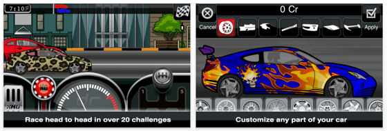 Gestalten und tunen Sie Ihr Auto für die 1/4, 1/2 und 1 Meilen-Rennen, in denen es nur geradeaus geht. Die Herausforderung dabei: schalten Sie Ihren Wagen richtig und setzen Sie Ihr Nitro richtig ein, um im rechten Moment extra zu beschleunigen und am Gegner vorbeizuziehen. Das Schalten ist nicht immer ganz einfach, weil die Schaltung etwas hakelig ist. Echte Fans hält das natürlich nicht ab, auch wenn es dann schon etwas ärgerlich ist, wenn Sie in Führung liegend, den 5. Gang nicht reinkriegen und Ihr Gegner lächelnd an Ihnen vorbeizieht. Aber auch hier macht Übung den Meister.