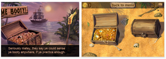 Manche Spiele sind so einfach, dass man nicht mal eine Anleitung braucht. Me Booty! ist so ein Spiel. Sie müssen möglichst viele Schatztruhen öffnen, in denen ein Schatz verborgen ist. Das Dumme ist nur, dass da mehrere Schatztruhen gezeigt werden und nur in einer der Schatz ist. Und so ist das ein Spiel wie Kopf oder Zahl. Ganz einfach – und für zwischendurch nicht schlecht. Wenn man bei OpenFeint angemeldet ist, kann man dort den Highscore eintragen und versuchen, den eigenen Highscore zu übertreffen.