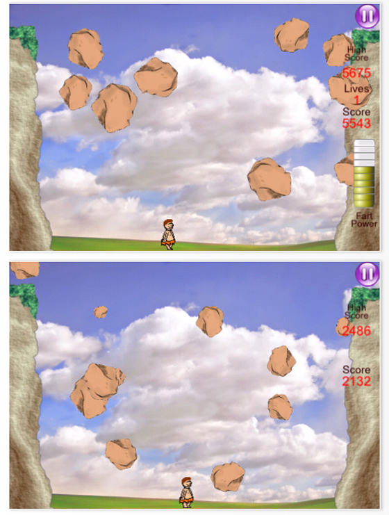 Die Spielidee ist nichts Neues, aber immer für eine kleine Entspannung gut: Bei Cave Balls Pro von Bryan Cimo fallen Felsen von der Klippe und Sie müssen aufpassen, dass Sie keiner der Felsbrocken trifft. Neigen Sie Ihr iPhone oder Ihren iPod Touch nach links und rechts, um mit Ihrer Spielfigur auszuweichen. Es gibt zwei Spielmodi: Im Classic-Modus haben Sie ganz realistisch nur ein Leben. Trifft Sie ein Felsen auf den Kopf, ist Schluß. Im Arcade-Modus haben Sie drei Leben und können zudem mit den Blähungen Ihrer Spielfigur eine schützende Gashülle um das Männchen aufbauen.