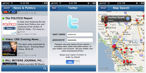 Über Tubulous kann man auch eigene Videos und Audiodateien verbreiten und so zum Podcaster werden und importierte oder selbst erstellte Dateien über Twitter und Facebook mit anderen teilen. Über Karten kann man nachsehen, wer in der Nähe auch Tubulous nutzt und deren oder dessen Dateien ansehen oder anhören. In Tubulous kann man sich seinen eigenen Favcast Channel anlegen, der alle die Kanäle und Podcasts enthält, die man regelmäßig schaut oder hört.