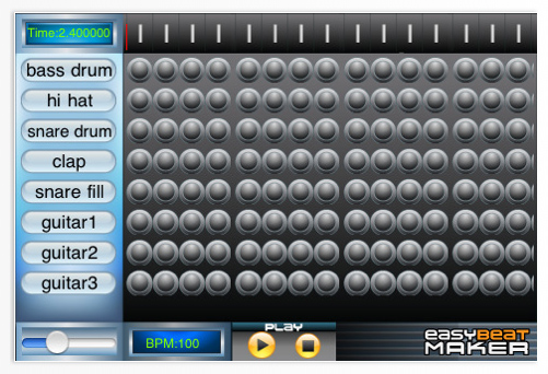 Easy Beat Maker macht seinem Namen alle Ehre: Einfach die Beats pro Spur antippen und schon spielt die App die Musik.