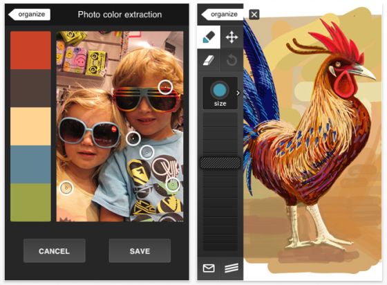 Aus auf dem iPhone gespeicherten Fotos kann man Farb-Paletten erstellen. Der Hahn ist unserer Meinung nach nicht so einfach nachzuzeichnen. Die App eignet sich doch mehr für Skizzen...