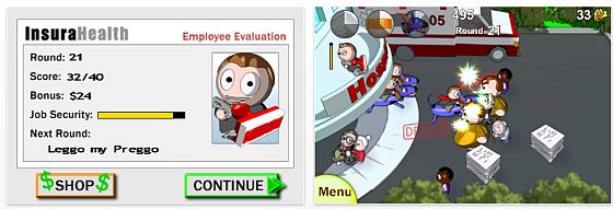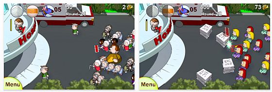 Die weltweite Finanzkrise bringt auch die Spiele- und Appentwickler auf neue Ideen. Unter dem Titel „Claim Denied“ (Antrag abgelehnt) müssen Sie sich als Versicherungsmitarbeiter den scharenweise anrückenden Versicherungskunden erwehren und so das Geld der Versicherung zusammenhalten. Sie haben dazu den Stempel „Antrag abgelehnt“ in der Hand und müssen vom Balkon des Krankenhauses aus die Anträge abarbeiten. Das tun Sie, indem Sie mit dem Finger die heranhumpelnden oder im Rollstuhl heranfahrenden Verletzten wegtippen. Mit steigenden Levels werden die jedoch immer schneller und Sie haben gut zu tun.Nach jedem Level erhalten Sie eine Mitarbeiterbeurteilung…