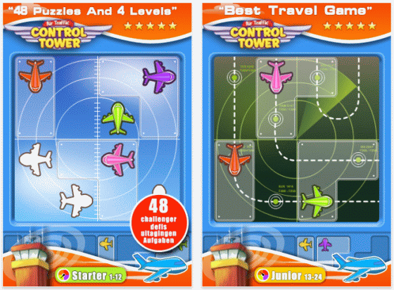 In vier Szenarien muss man mit Hilfe der transparenten Puzzle-Teile dafür sorgen, dass die Flugzeuge ihren Bestimmungsort erreichen.
