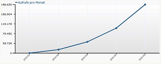 Entwicklung der Pageviews seit Januar 2010 auf app-kostenlos.de