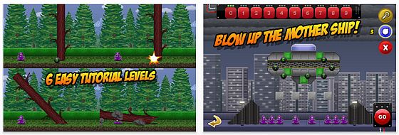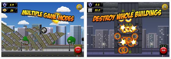 Schon wieder sind Aliens auf der Erde gelandet. Alle herkömmlichen Waffen versagen. Deshalb bleibt Dir nur eine Wahl: Wolkenkratzer kontrolliert zum Einsturz zu bringen und damit die Aliens zu besiegen. Eine ziemlich schräge Spielidee von 628 Games, den Entwicklern von Monster Crush Demolition. Es beginnt mit einem Tutorial, wo man mit ersten Bomben an Bäumen trainieren darf. Dann folgt ein Turm, den es richtig zu sprengen gilt und so lernt man, wie man zum Sprengmeister wird und mit gezielten Sprengungen die Aliens tötet. Manchmal geht es auch um andere Aufgaben: Da muss zum Beispiel ein Ball, der auf dem Hochhausdach liegt, durch den herbeigeführten Einsturz des Gebäudes möglichst weit rollen. Ist das Ergebnis gut, gibt es einen goldenen Stern, ist es mittelmäßig gibts Silber und ist es gerade so gelöst, bekommt man einen bronzefarbenen Stern.