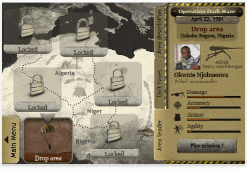 Du spielst als Major John McKenzie, einem der besten Scharfschützen der US-Army Spezialeinheit. Du wurdest ausgewählt, um in einer geheimen Operation die Entführer aufzuspüren und den Verkauf der Waffen zu verhindern. Du wirst dafür in der Oshogbo Region abgesetzt. In der Nähe des Ortes Burkisashu befindet sich das einzige bekannte Rebellen-Camp.