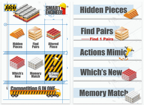Das vierte Spiel heißt Find Pairs, hier muss man aus einer Reihe angezeigter Bauteile gleiche Motive heraussuchen.
