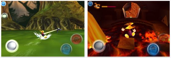 Vielfältiges Spiel: Hilf Rayman dabei, zu klettern, zu schwimmen, Wasserski zu fahren und mit seinem Propeller zu fliegen. Benutze das virtuelle Steuerelement, um Rayman in alle Richtungen zu bewegen und seine magischen Kräfte anzuwenden!