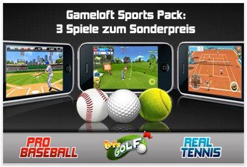 Gameloft Sports Pack – das Sport Päckchen kommt mit den Titeln Pro Baseball, Let’s Golf und Real Tennis. Die Kombi hat 222 MB und kann daher nur über WLAN oder hier über den Rechner geladen werden.