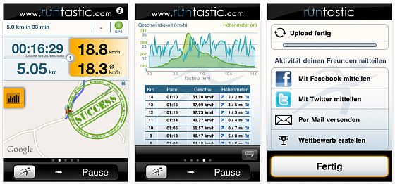 ✔ Teile deine Aktivitäten mit anderen auf Facebook, Twitter und im runtastic Sportportal