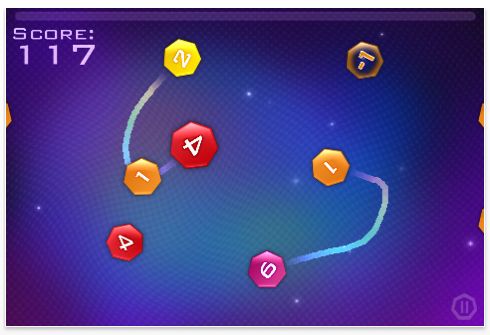 Es geht darum, verschiedene Elemente mit Nummern drin so zu kombinieren, dass die Nummern aller kombinierter Elemente die Zahl 7 ergeben. Dazu verbiindet man per Fingerstrich auf dem Display die gewünschten Elemente. So kombiniert man ein Element mit einer „5“ mit zwei Elementen mit einer „1“ und erhält so das gewünschte Element mit der Super 7. Ganz so einfach ist es dann im Verlauf aber auch nicht, denn die Elemente dürfen nicht aneinanderstoßen, wenn sie zusammengerechnet mehr als sieben ergeben würden.