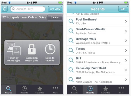 Unentbehrliche App für alle iPod Touch und iPhone, wenn man auf Reisen ist. 100.000 Einträge sind ein Wort und helfen unterwegs, einen Hotspot zu finden. Wir haben zum Test einige beliebte Urlaubsregionen eingegeben und jeweils sofort verfügbare Hotspots angezeigt bekommen.