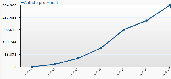 Allein die Startseite wurde im Juli 195.000 mal aufgerufen, also 6.290 mal pro Tag im Schnitt.
