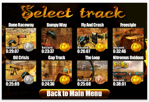 Schaffst Du sogar vier Gold-Medaillen hintereinander, bekommst Du einen verbesserten, stärkeren Truck. Zur Zeit gibt es 12 Strecken, die Du nach und nach freischalten kannst.