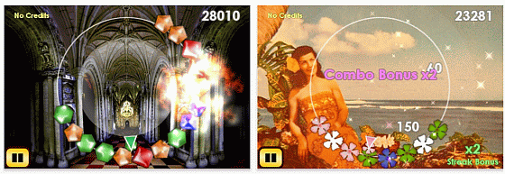 Da die Steine einfach so auf die Kette drauffallen, muss man zur Steuerung die Kette mit den sich darauf befindlichen Edelsteinen drehen und so versuchen, die Steine der gleichen Farbe zu kombinieren. Dazu bedient sich das Spiel des Beschleunigungssensors. Denk aber nicht, dass das so einfach ist, denn die Steine schaukeln auch ganz schön hin und her – und wenn der Kreis mit Steinen vollbesetzt ist, dann endet das Spiel. Das Spiel bringt richtig Spass, gerade auch weil die Steine so hin und her schaukeln und man sich wirklich Mühe geben muss, die Dreiergruppen hinzubekommen.Wenn Du eine Gruppe zusammen hast, wird sie erst aufgelöst, wenn der aus der Mitte ausströmende Nebel die Kette erreicht hat. So kannst Du vielleicht noch eine Kombination hinbekommen, in dem Du mehrere Dreiergruppen bildest.
