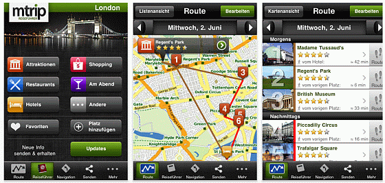 Lassen Sie mTrip , ein Reiseführer mit mehr als 3000 London-Attraktionen mit Beschreibungen, Bewertungen, Berichten und Bildern, Ihre personalisierte Reiseroute erstellen. Sie suchen Ihren Weg zum British Museum? Der Reiseführer wird Sie zu jedem Ihrer Reiseziele geleiten, ganz so, wie ein persönlicher Stadtführer es tun würde. Auf der Karte sehen Sie Ihren aktuellen Standort, und Sie können sich die optimalsten Routen offline zu Fuß oder mit der U-Bahn anzeigen lassen. Sie möchten London auf eine neue Art erleben? Nutzen Sie Augmented Reality und sehen damit London mit anderen Augen. Schießen Sie Fotos und senden Sie Postkarten über Facebook & E-Mail an Ihre Familie und Freunde.