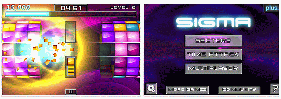 Das Spiel ist Level-basiert: Auf dem Screen oben ist eine Fortschrittsanzeige, die sich mit dem Auflösen von Gruppen nach und nach füllt. Ist die Anzeige voll, startet der nächste Level. Es gibt sechs Welten, in die die Level eingruppiert sind. Hat man alle Level einer Welt geschafft, so hat man die nächste Welt aufgeschlossen. Gut, dass Sigma den Spielfortschritt speichert, so kann man beim wiederholten Spiel frei wählen, welche der bereits freigeschalteten Welten man spielen möchte. Zudem gibt es drei Schwierigkeitsgrade mit Anzeige, wie weit man diese schon gespielt hat.