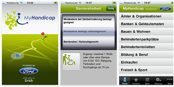 Für Ford ist das Sponsoring einer iPhone App eine Premiere, zugleich aber auch ein logischer Schritt. Ford hat alleine im vergangenen Jahr über sein Händlernetz in Deutschland rund 5.500 Fahrzeuge speziell an Menschen mit Mobilitätseinschränkungen verkauft – circa 17 Prozent mehr als 2008 (4.700). Ein wichtiger Grund für diese positive Entwicklung ist dabei sicher die attraktive, junge Modellpalette mit Fahrzeugen, die nicht zuletzt aufgrund umfangreicher Forschungsaktivitäten – beispielsweise zur Ergonomie – bestmöglich auf die Bedürfnisse dieses Personenkreises zugeschnitten sind. Hinzu kommen Extras und Ausstattungsoptionen, die bei anderen Herstellern nicht bestellbar sind, wie zum Beispiel beheizbare Frontscheiben oder „Allergie getestete Innenräume“. Ein weiterer wichtiger Erfolgsgrund sind zudem die großzügigen Nachlässe von bis zu 20 Prozent, die die Ford-Händler beim Kauf eines Ford-Neuwagens allen Inhabern eines Schwerbehindertenausweises (Selbstfahrer und Passivfahrer) mit einem Grad der Behinderung von mindestens 50 Prozent gewähren können. „Gerne unterstützen wir MyHandicap bei ihrem Engagement für eine größere Barrierefreiheit im Alltag“, so Gabriel Sommer, bei Ford zuständig für den Verkauf von Fahrzeugen an Menschen mit Mobilitätseinschränkungen. Sommer weiter: „Für viele Menschen mit Mobilitätseinschränkungen ist das Autofahren mit einer Fülle von Herausforderungen verknüpft, die es individuell zu überwinden gilt. Wie sollte ein Auto für Menschen mit eingeschränkter physischer Leistungsfähigkeit konstruiert sein? Welche Autos wollen oder müssen Menschen mit Mobilitätseinschränkungen fahren? Die Suche nach Antworten auf diese Fragen, und damit nicht zuletzt auch das Thema Barrierefreiheit, hat bei Ford traditionell einen hohen Stellenwert.“