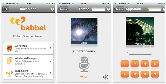 Mit modernen Lernsystemen wie Babbel kann man flexibel lernen, wo, wann und wie lange man will. Ob zu Hause oder unterwegs, ob kurzes Vokabeltraining oder umfangreicher Grammatik-Kurs – technische Hilfsmittel wie Computer oderHandy machen es möglich. Mit der neu integrierten Spracherkennung kann der Nutzer nun auch per iPhone ganz einfach die Aussprache trainieren und weiß sofort, wie gut er einzelne Wörter oder alltagsrelevante Floskeln ausspricht.