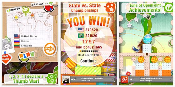 Lasst Euch beim ersten Ansehen eines Levels Zeit, es ist völlig egal, in welcher Geschwindigkeit Ihr den löst. Erst wenn man den Dreh raushat, sollte man „Play again“ antippen und den Level zügig durchspielen, damit es maximale Punkte gibt. Das Spiel bietet in der ersten Ausbaustufe 90 Level, weitere sollen über Updates kostenlos dazukommen. Durch die Anbindung an OpenFeint gibt es wieder zig Auszeichnungen, die man bekommen kann.