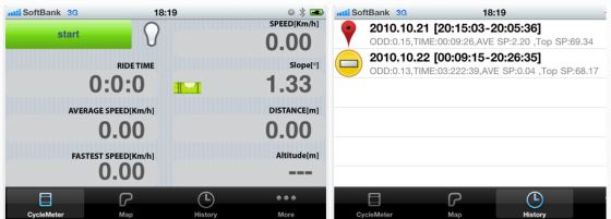 Man kann das iPhone und sogar den iPod Touch auch als vollwertigen Fahrradcomputer nutzen. Dazu lädt man sich die gerade kostenlose App Cyclemeter und montiert das iPhone auf dem Lenker. Mit der App kann man sich die aktuelle Geschwindigkeit anzeigen lassen, kann die Durchschnittsgeschwindigkeit berechnen lassen und die Fahrzeit sehen. Durch GPS gibt es auch Infos über die zurückgelegte Strecke. Der Hammer aber ist, dass die App auch über Kabel und Geräuschauswertung funktioniert.Wie das genau funktioniert, wird in der App erklärt.