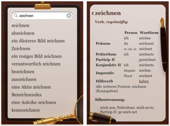Sehr umfangreiche Wörterbuch-App, die auch für jedes Wort die dazu gehörenden Grammatik-Hinweise gibt.