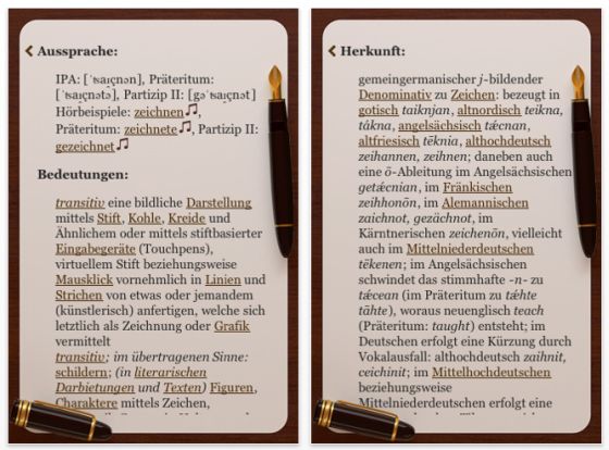 Deutsches Wörterbuch BigDictEin riesiges deutsches Wörterbuch ist die Universal-App Deutsches Wörterbuch BigDict mit 170.000 Stichwörtern und Redewendungen, Übersetzungen in 200 Sprachen, dazu 10.000 gesprochene, deutsche Wörter und 500.000 Anwendungsbeispiele und grammatikalische Hinweise: