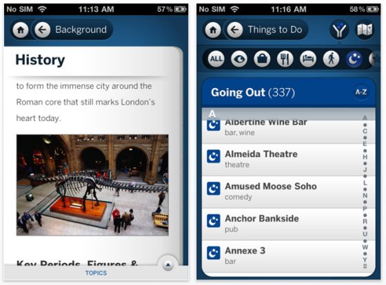 Wie man es heute von Reiseführern auf iPhone und iPod Touch erwartet, bietet auch Lonely Planet London offline Karten der Stadt, viele Infos zu Aktivitäten und Sehenswürdigkeiten und allgemeine Informationen. Wenn man jedoch mTrip Reiseführer kennengelernt hat, kommt Lonely Planet nicht mehr ganz mit, da mTrip Reiseführer ersten auch in Deutsch sind und zweitens über mehr sinnvolle Funktionen für Reisende verfügen.