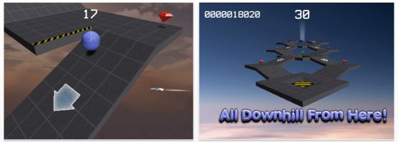 Scherz beiseite. Das Spiel Super Marble Roll ist schön gemacht. Allein über den Bewegungssensor steuert man eine Kugel durch ein Phantasiespielfeld, das in der Luft schwebt. Unterwegs versucht man, Goodies einzusammeln – und durch die Zeitbegrenzung versucht man, nicht zu bummeln. Ist die Murmel dreimal runtergefallen, ist das Spiel zuende. Eigentlich ganz simpel, oder?
