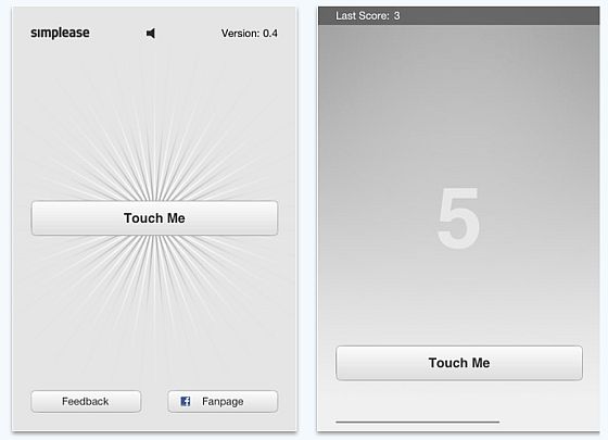 Sehr simpler Aufbau, aber das tut dem Spiel keinen Abbruch. Tippe einfach auf "Touch me" und sieh, wie weit Du kommst.