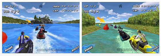 Deinen Jet-Ski steuerst Du über den Bewegungssensor, nach links kippen um eine Kurve nach links zu machen, nach rechts kippen, um nach rechts zu fahren. Dazu gibt es noch eine Bremse (unten links auf dem Displays) und einen Boost, der sich nach Verwendung langsam wieder aufbaut (rechte Taste auf dem Display). Die Kunst ist es, die Bojen möglichst knapp zu umfahren, ohne sie jedoch zu berühren. Im Verlauf des Spiels kommen immer mehr Herausforderungen, wie zum Beispiel Sprungschanzen, die Du erstens treffen musst und zweitens auch mit genug Geschwindigkeit ansteuern solltest, damit Dich niemand überholt.