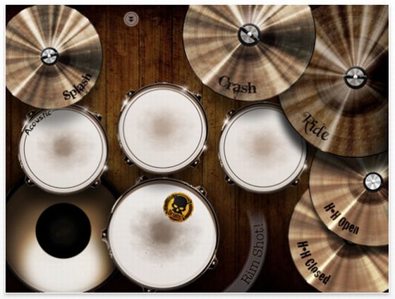 Eins von drei Schlagzeugen, die man mit der App spielen kann. Zum Menue kommt man über den Zug am oberen Bildschirmrand