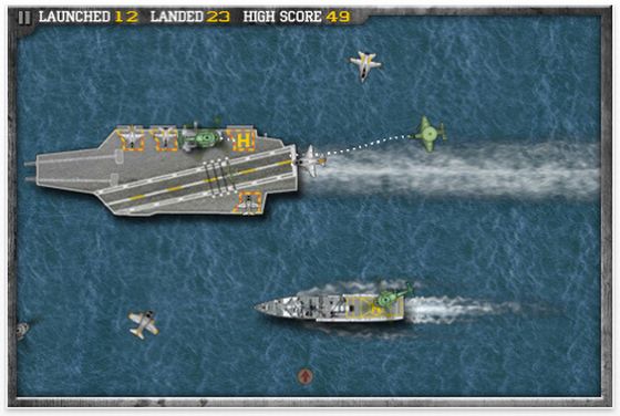 Erwähnenswert ist auch Flight Deck, das ebenfalls gerade kostenlos angeboten wird. Hier steuerst Du als Marine-Flieger Fluglotse den Flugverkehr von Hubschraubern und Düsenjägern. Du bist für Starts und Landungen verantwortlich und musst dafür sorgen, dass die Flieger nicht kollidieren. Das geht eigentlich ganz einfach, wenn der Luftraum nicht plötzlich so überfüllt wäre. Duch die Anbindung an OpenFeint kannst Du Deine Leistungen mit denen anderer vergleichen.