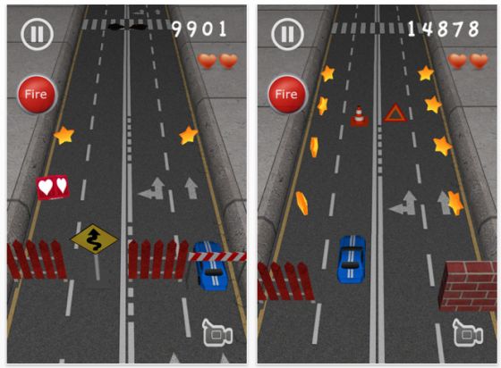 Das Fahrzeug steuert man mit dem Finger auf dem Display. Während bei dem kürzlich vorgestellten Racer andere Wagen auf einem sechsspurigen Highway zu überholen sind, ohne mit ihnen zu kollidieren, ist das hier mehr eine Hindernisfahrt mit Überraschungen. Da ginbt es Öllachen, Mauern, Baustellenabsperrungen, Verkehrsschilder, Warndreiecke und Hütchen – also alles, wie in echt. Manche der Absperrungen bewegen sich aber, das erschwert das Ganze. Die niedrigen Hindernisse kann man überspringen, die hohen, wie zum Beispiel die Mauern, kann man auch wegschiessen, wenn man vorher eine Missile aufgesammelt hat. Es gibt insgesamt vier Goodies, die man aufsammeln kann: Raketen, Geschwindigkeitsverringerung, ein Extra-Leben und den Gott.Modus, mit dem man durch alle Hindernisse durchfahren kann.