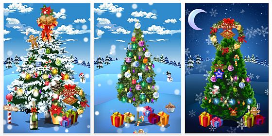 Weihnachten rückt unaufhaltsam näher und da wundert es nicht, dass auch die App-Entwickler schon mal auf Weihnachten einstimmen möchten. Mit Christmas Delights ist jetzt eine App erschienen, mit der man Weihnachtsbäume schmücken kann. Zunächst wählt man einen von drei Bäumen (sogar ein Laubbaum ist für südliche Gefilde dabei), einen Hintergrund und ein Wetter mit mehr oder weniger großen Schneeflocken aus.  Die zur Verfügung gestellten Kerzen (elektrisch) und weiteren Baumbehänge sind nicht so ganz der übliche deutsche Geschmack, manche würden sie wohl als extrem kitschig und zu bunt bezeichnen.