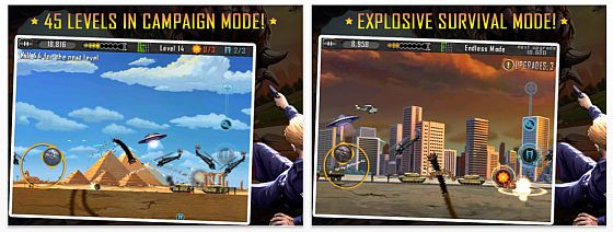 In drei Kampagnen mit je 15 Leveln müsst ihr mit dem Todeswurm möglichst viel zerstören. Natürlich lassen sich die Menschen das nicht gefallen – und so bringen sie immer mehr Waffensysteme in das Gebiet. Wenn zuerst die Hubschrauber und Soldaten noch kein Hindernis darstellen, so kommen dann auch Panzer und die Schußfrequenz steigt deutlich an. Mit Kombos – die man zum Beispiel dadurch erreicht, dass man den Wurm recht tief über den Erdboden gleiten lässt, verdient man extra Punkte. Dein Wurm wird – sofern Du die Upgrade-Möglichkeiten nutzt, immer etwas besser und gefährlicher, aber gleichzeitig werden die Aufgaben schwerer und die Menschen rüsten weiter auf. Insgesamt gibt es dreißig verschiedene Gegner.