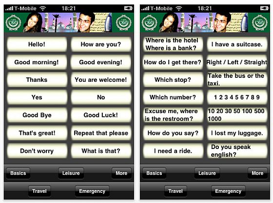 Eine App, die man bei Reisen in arabische Länder auf dem Gerät haben sollte, denn nicht überall kommt man mit Englisch durch. Und wenn man gerade mal nicht nach Arabien fliegt, kann man die App einfach mal ausprobieren und dann löschen oder in iTunes dauerhaft abspeichern.
