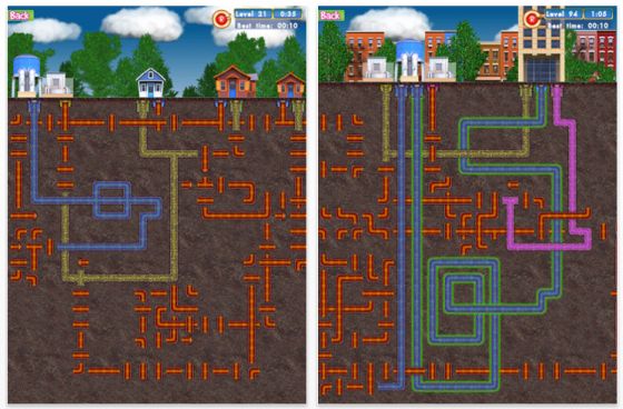 Mit über 100 Levels glänzt das Puzzlespiel PipeRoll, in dem es darum geht, möglichst schnell Abwasserrohre miteinander zu verbinden. Das geht recht einfach: Durch Tippen auf die wild durcheinander verlegten Rohrteile dreht man diese so lange, bis sie mit dem vorherigen Rohr verbunden sind und die Flüssigkeit durchfliessen kann. So verbindet man in den ersten Levels über die Rohre zwei Häuser miteinander. Der Level ist abgeschlossen, wenn die Flüssigkeit von einem Haus zu anderen fliessen konnte. Es gibt bis zu vier unterschiedliche Flüssigkeiten und verschiedene Szenarien. In den weiteren Levels werden es dann mehr Häuser, dazu kommen Wassertürme und verschiedene Leitungen. Die Levels müssen der Reihe nach durchgespielt werden.