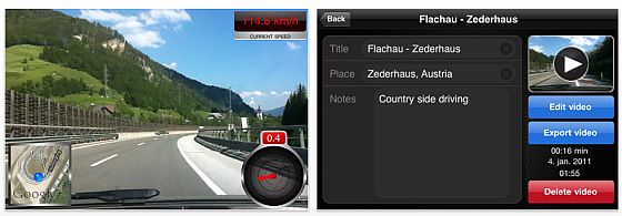 Vielleicht fällt Dir aber zu dieser App noch ein anderer Einsatzzweck ein? Du kannst zum Beispiel damit Deinem Chef zeigen, wie ordentlich Du fährst, Du kannst im Lager die Wege des von Dir gefahrenen Staplers zeigen oder Motorradausfahrten festhalten. Ein Film dauert bis zu 10 Minuten, dann startet der nächste Film. Die Videos kannst Du anschließend in Dein Foto- und Filmarchiv exportieren, das kostet allerdings einmalig 6,99 Euro.