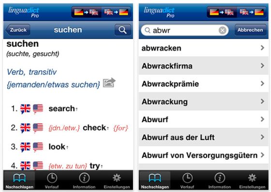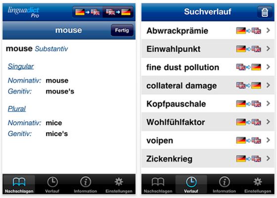 Riesen Wörterbuch-App Linguadict Pro heute kostenlos für iPhone, iPod Touch und iPad