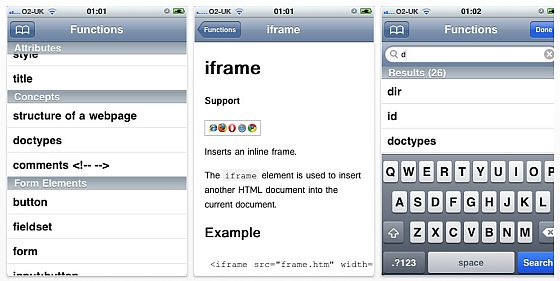 Wenn man sich mit CSS und HTML beschäftigt, können die Apps CSS Pocket und Pocket HTML von Damon Skelhorn ganz nützlich sein. Über die Apps hat man Zugriff auf die wichtigsten Befehle und kann eben mal nachsehen, wie man dieses oder jenes macht. Die Apps liefern für jede Aufgabe auch einen exemplarischen Code, den man direkt übernehmen kann. Beide Apps richten sich an Anfänger und an erfahrene Programmierer, die ja manchmal auch etwas nachsehen wollen.