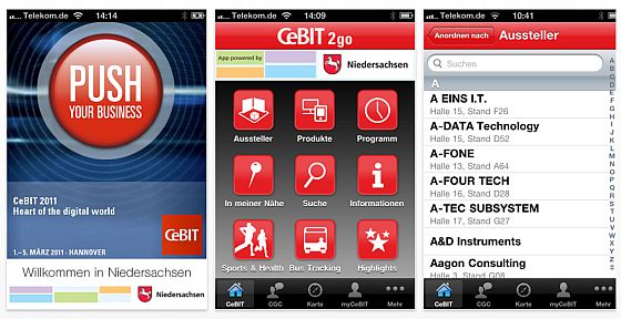 Am 1. März beginnt in Hannover wieder die CEBIT und da ist es garnicht schlecht, wenn man den Überblick behält. Statt jetzt den Katalog mit rumzuschleppen und auf den Hallenplänen die Aussteller zu suchen, kann man mit dem offiziellen CEBIT-Guide alles in das iPhone stecken und bei Bedarf schnell mal nachsehen. Die App CEBIT2go kommt zweisprachig in Deutsch und Englisch – und sie ist kostenlos!