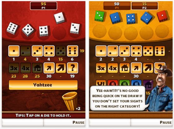 EA hat das Spiel in zwei Versionen entwickelt: Als Yahtzee Adventures für iPhone und iPod Touch  und als Yahtzee HD Version für das iPad. Beide Versionen sind sehr schön und hochwertig umgesetzt, das iPad profitiert mal wieder vom größeren Display. Man kann Yahtzee allein spielen oder mit anderen, indem man das Gerät weiter gibt.